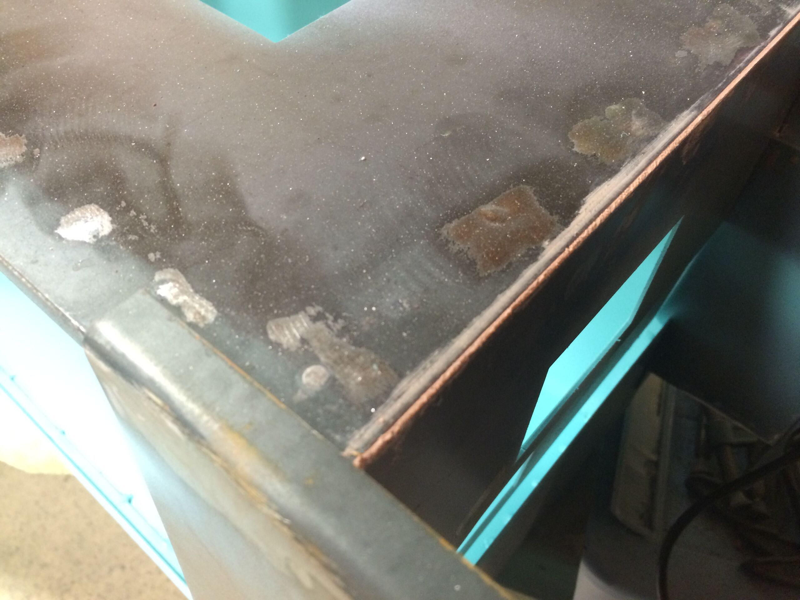 The corners of the caboose are to be rounded. This is accomplished by first filling the corners with Bondo, as shown here. Photo by Daris A Nevil, June 2015.