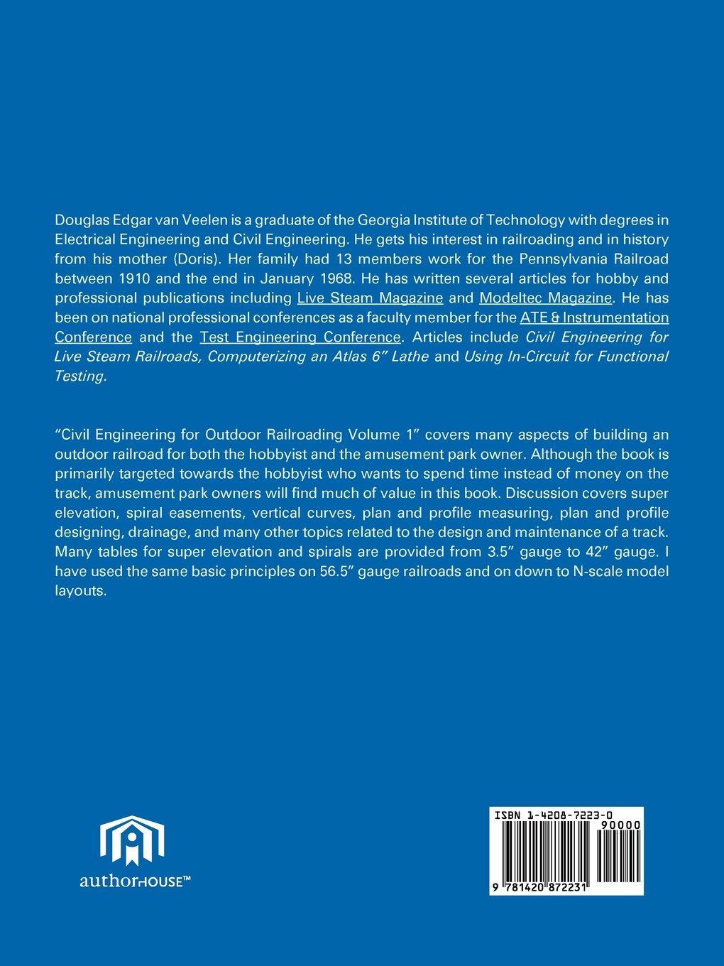 Back cover for "Civil Engineering for Outdoor Railroads", Volume 1, by Douglas van Veelen
