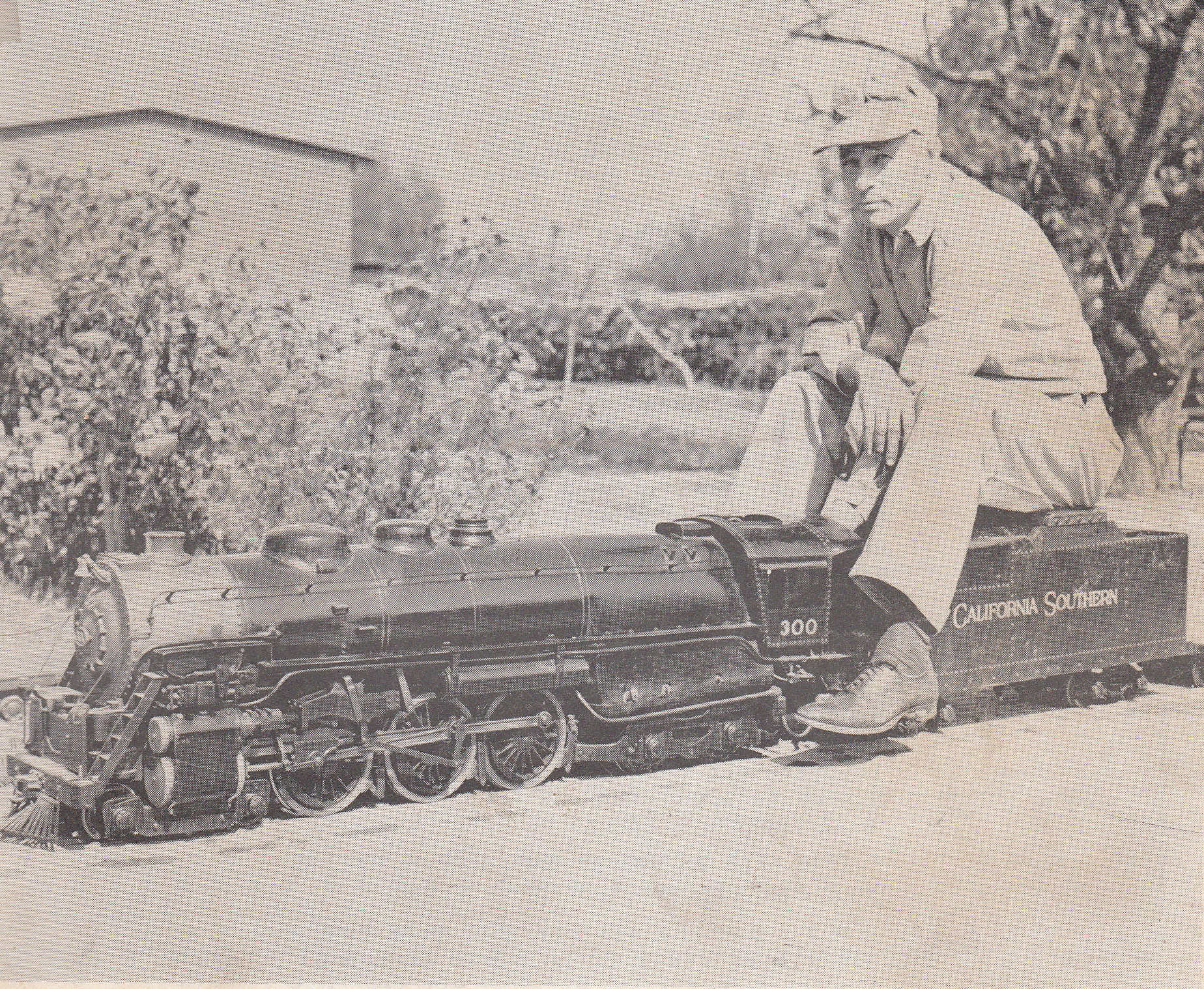 James N Keith of Riverside, California with his 1 inch scale 4-6-4 Hudson locomotive. From the cover of "The North American Live Steamer", Volume 1 Number 4.