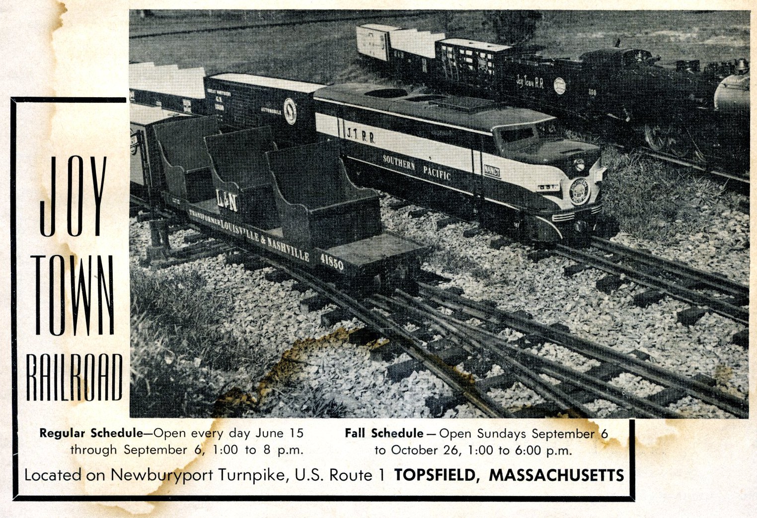 current16:11, 13 October 2013Thumbnail for version as of 16:11, 13 October 20131,524 × 1,044 (627 KB)Dnevil (talk | contribs)Joy Town Railroad advertisement. From The Miniature Locomotive, November/December 1952.
