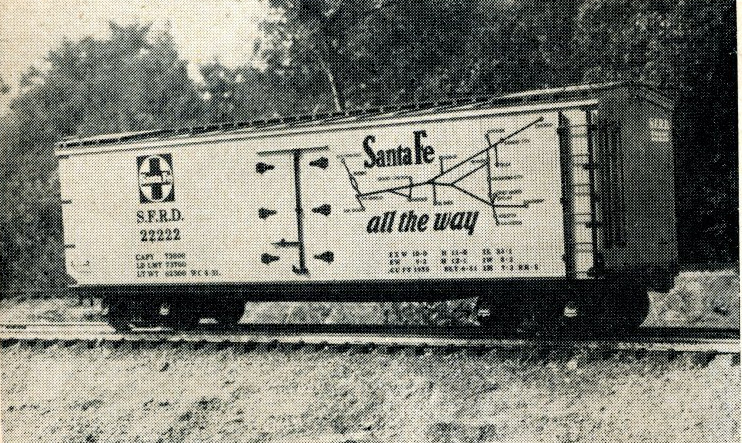 Reefer with scored sides to simulate boards. Door handles work on crank principal like the big ones. Photo by Ollie Johnson. From "The Miniature Locomotive", November-December 1952.