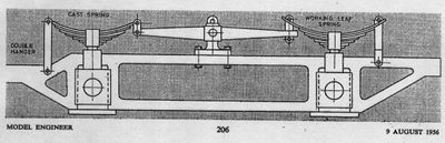 As you know I found an addendum for the reversing lever. Unfortunately after looking at it closer it is only for use with the alternative spring set up which uses a cast spring (shown on the left). I am using the working leaf spring set up (shown on the right). I have attached a JPEG of the two different suspensions from the article. Curly also points out the under-slung arrangement used on British Locomotives that he intends to use because it's easier to fit up. So a third alternate and then there is a fourth with spiral springs (shown with the addendum). Lots of options.