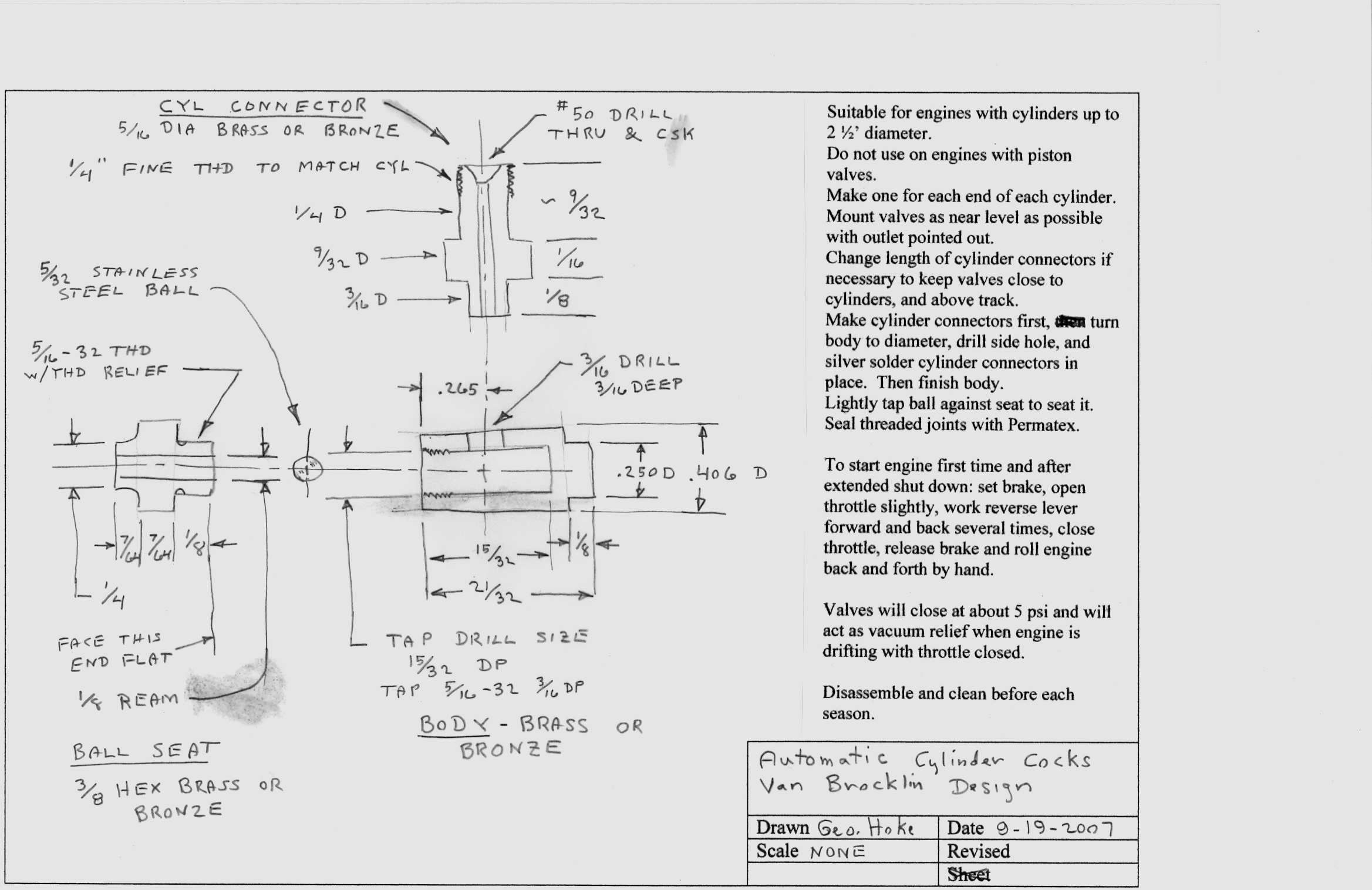 Automatic cylinder cocks designed by Bill Van Brocklin, drawn by George Hoke. From http://www.7-plus-ngm.org/2008/arch0802.htm