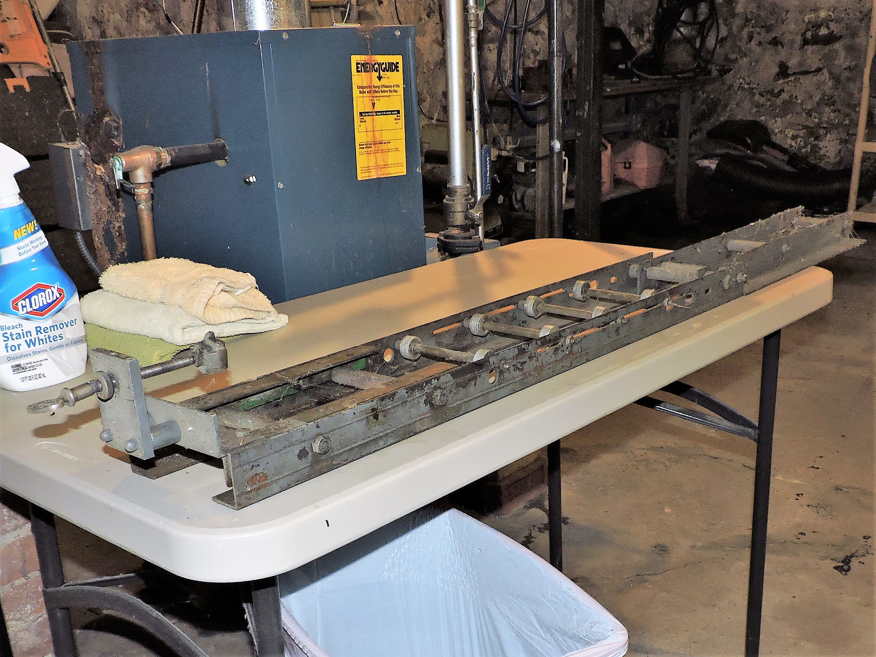 Bill Van Brocklin's Roller Test Stand for 3/4 inch scale locomotives. Photo by Pat Fahey, April 2018.