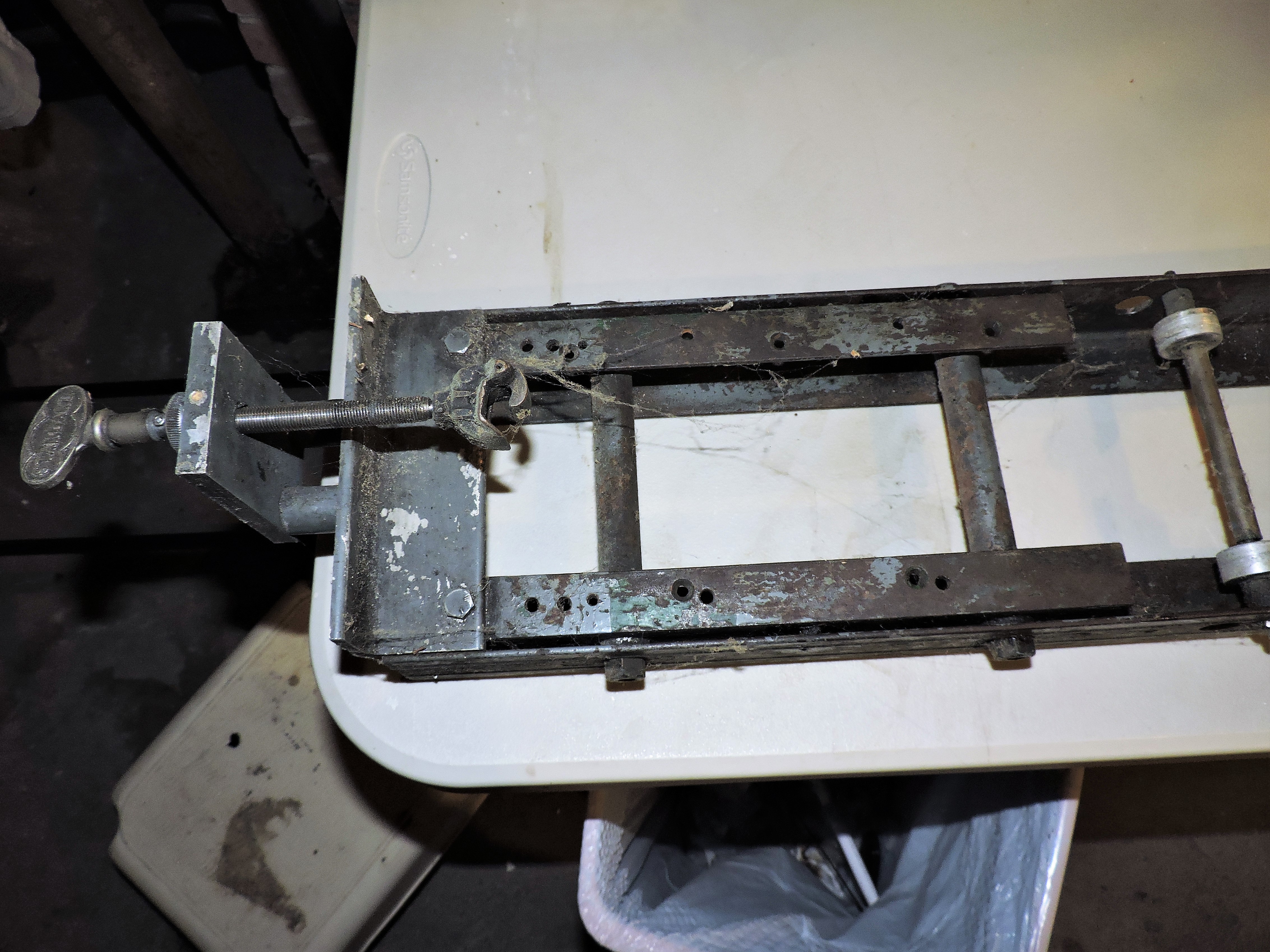 Bill Van Brocklin's Roller Test Stand for 3/4 inch scale locomotives. Photo by Pat Fahey, April 2018.