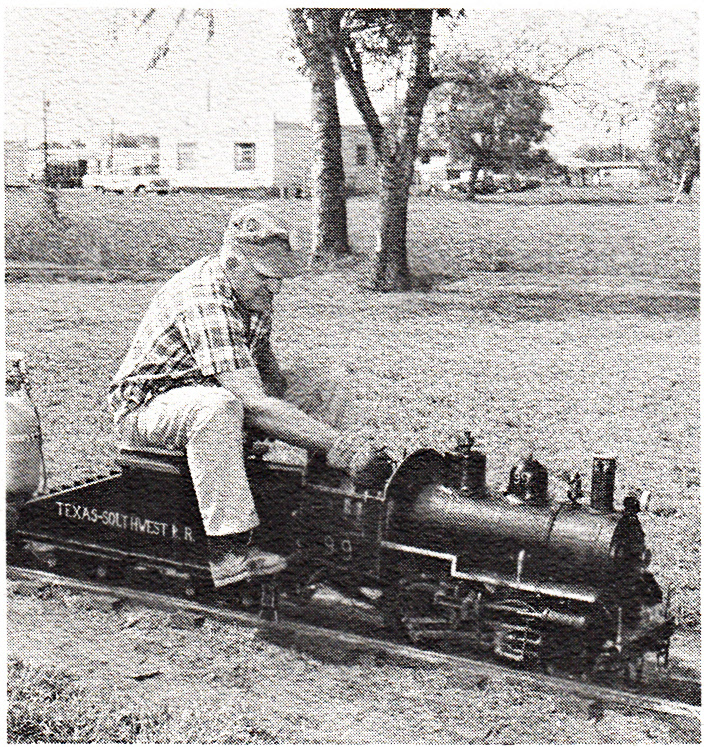 Ces Beck at the throttle of his "Butane Flash" switcher waits on the lead track. Photo by Carol Dryden. From Live Steam Magazine, September 1969.