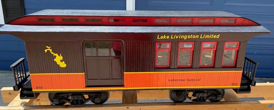 This combine car was built by Don Isom. Photo by Greg Moore of Houston Area Live Steamers, September 2021.