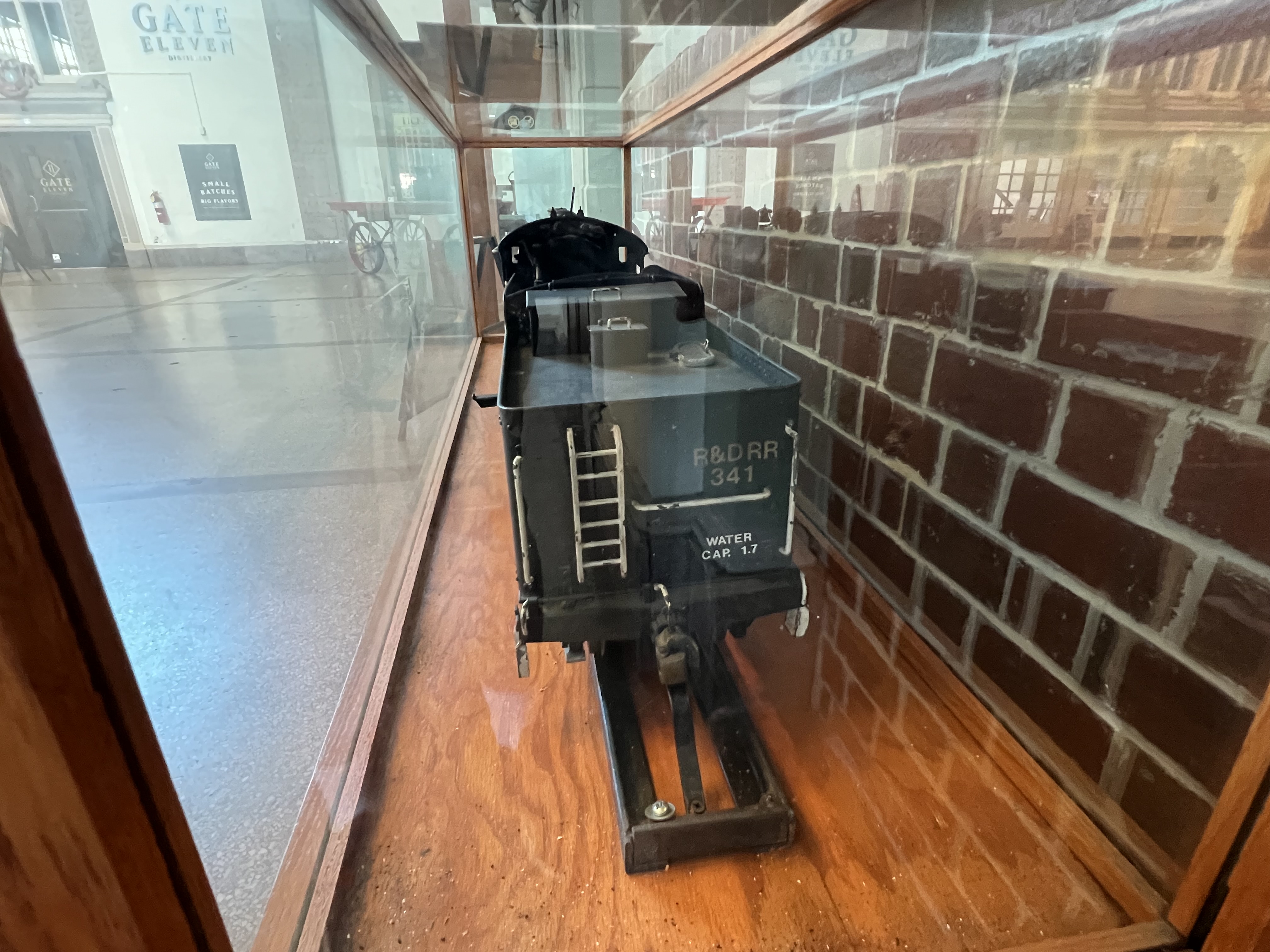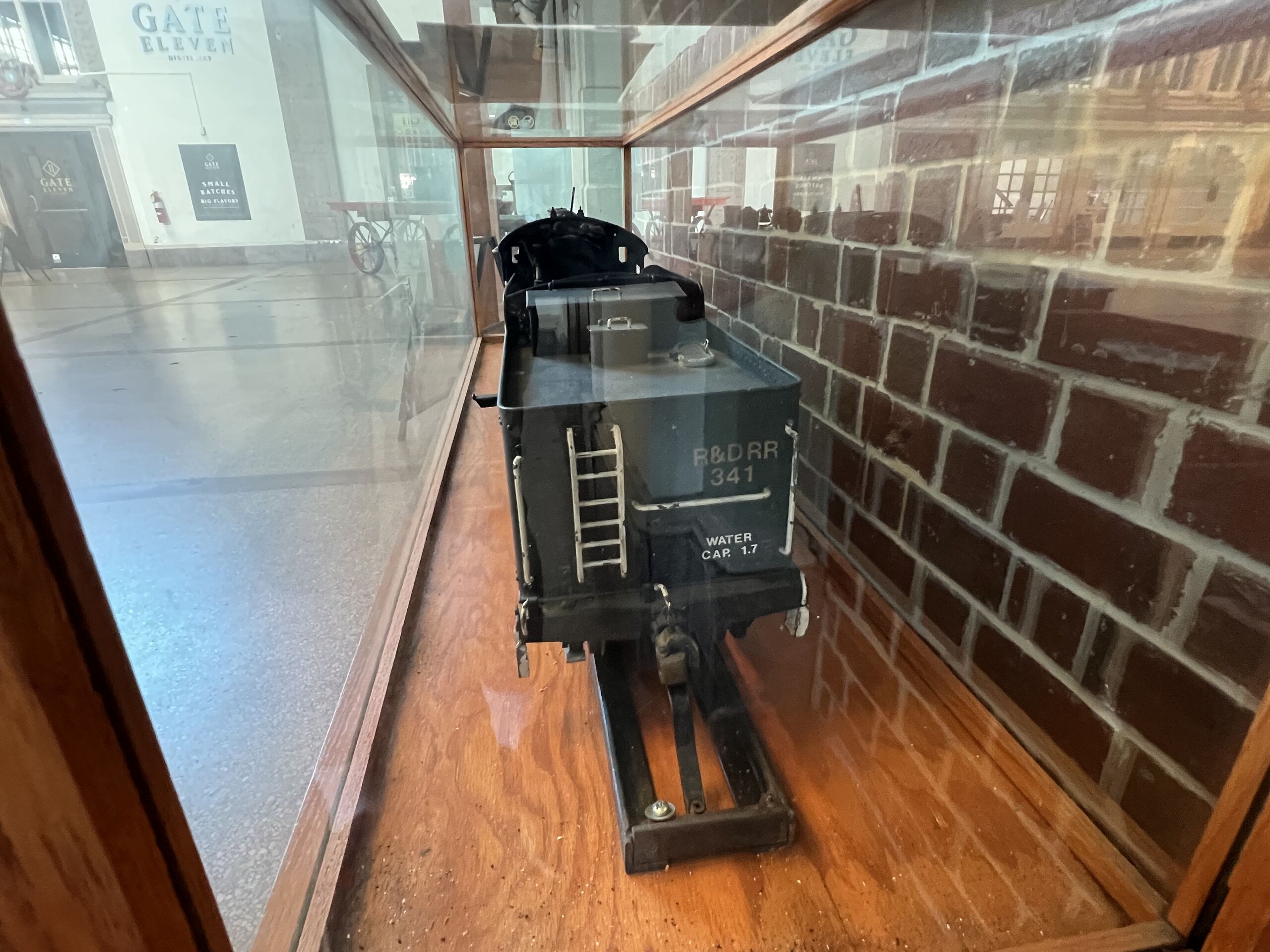 3/4” Atlantic 4-4-0 built by J. B. Sqquires on display at the old Chattanooga station (Choo Choo Hotel), 28 May 2024. Photo by Daris A Nevil.