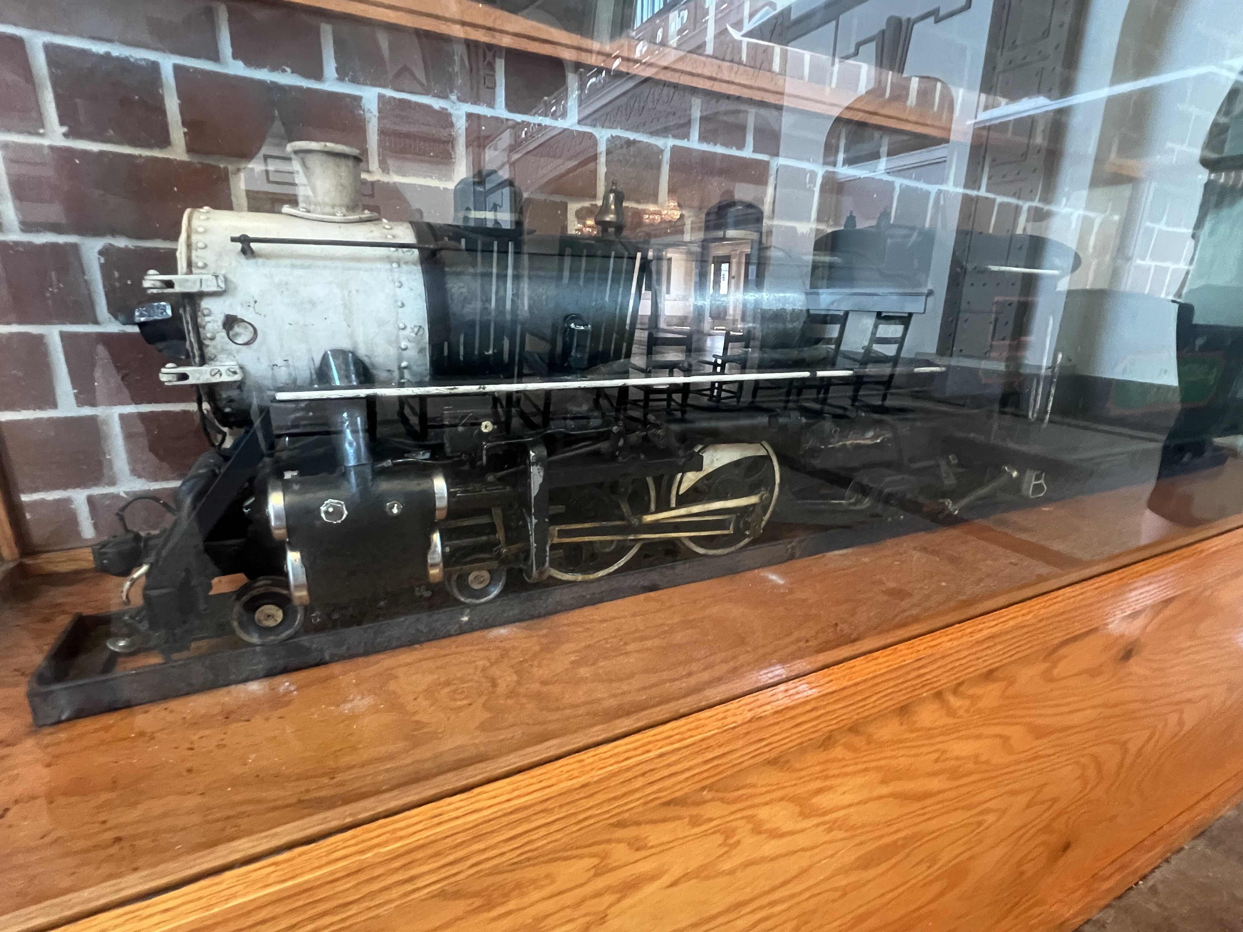 3/4” Atlantic 4-4-0 built by J. B. Sqquires on display at the old Chattanooga station (Choo Choo Hotel), 28 May 2024. Photo by Daris A Nevil.