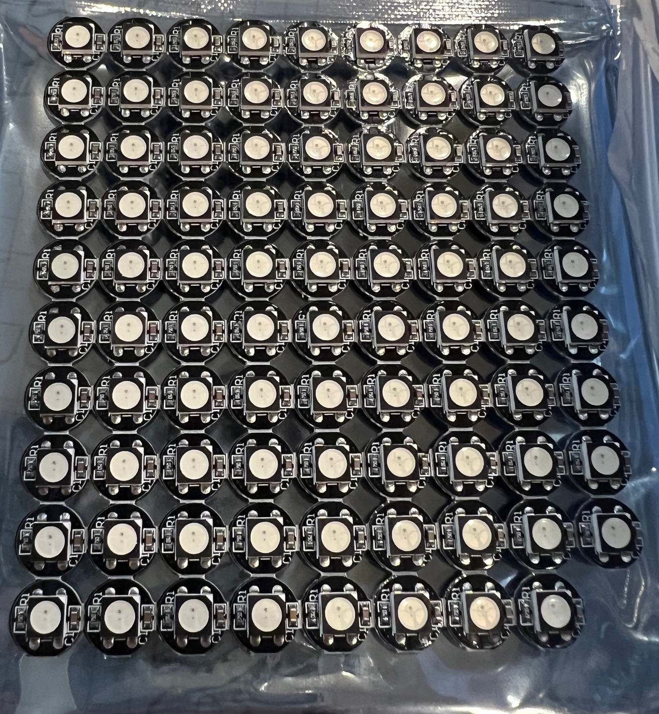 A sheet of WS281 multi-color LEDs. Photo by Daris A Nevil 5 Dec 2024.