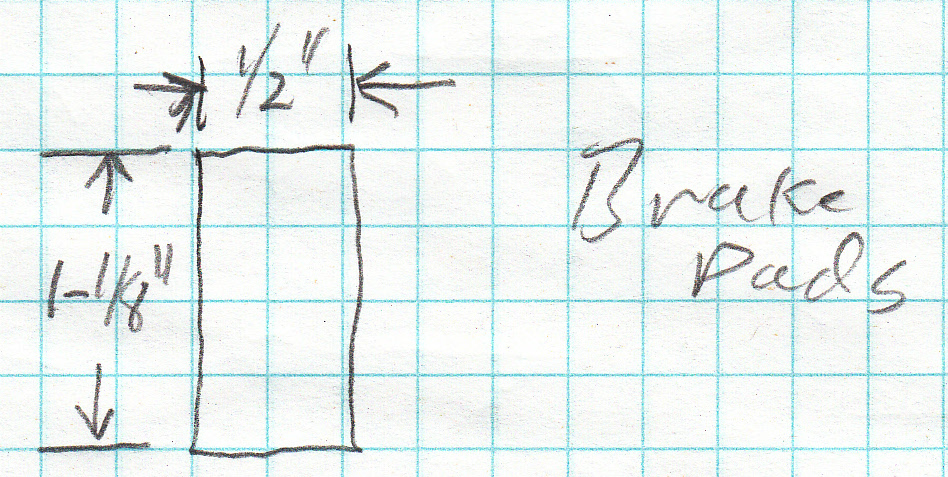 Brake pads, four required per truck. Drawn by Daris A Nevil, June 2015.