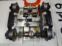 In the early days of the “train” operation, audio from a sound effects record was fed through the rails to a speaker mounted in the locomotive hood, blaring out the sound of a roaring diesel engine. The locomotive’s stainless steel wheels are electrically isolated from each other providing an electrical path to the aluminum rails for purposes of recharging the batteries without having to use a plug-in cord. This design attribute was a pretty novel concept especially if the train happened to run out of “juice” 300 hundred yards down the track, away from any direct power hook-up. Locomotive traction is obtained from a 2HP rated 24volt 4000 RPM Sperry hydrostatic gun turret motor originally used in B-17 military aircraft during WWII. The units have held up well except for a slight blip in 1990 when I had to repack worn out leather gaskets in the transmission’s swinging yoke mechanism. I fixed that problem using leather from old Marine Corps boots issued to me back in boot camp. The Lima Switcher weighs 412 lbs loaded with 3 six-volt group 2 batteries making up an 18-volt system. The 2 horsepower rating of the motor is reduced by operating it at 18 volts. And older wiring diagrams of the engines showed my grandfather originally ran the units with just 12 volts.