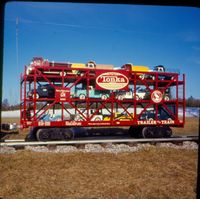 This brings to mind another one of my favorite stories. In 1966, Kenny had finished making an open style car-carrier and mounted it to the top of his Buick for a trip from Michigan to Minnesota. He drove up to the Tonka Toy factory entrance (then located at Mound, Minnesota) with the full intention of buying enough Tonka Toy cars to outfit his railcar. A representative from the factory commented, “You’re going all the way back to Michigan with this on the top of your car? It will be worth the advertising you’re going to do for our product for us to load it up for free.”