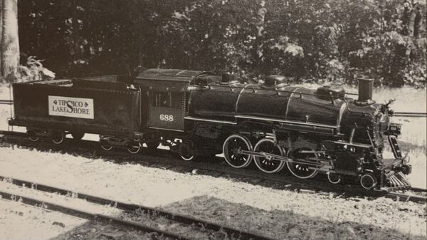 William L. Daney from Pueblo, Colorado, visits The Tipsico Lakeshore Railroad for the 40th anniversary in 1987, seeing the heavy Pacific in operation for the first time since building it in 1936.