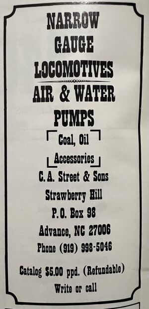 - C.A. Street & Sons arranged to build pumps to Bill Van Brocklin's designs. They sold their model business to Fred Ellis of Power Model Supply.