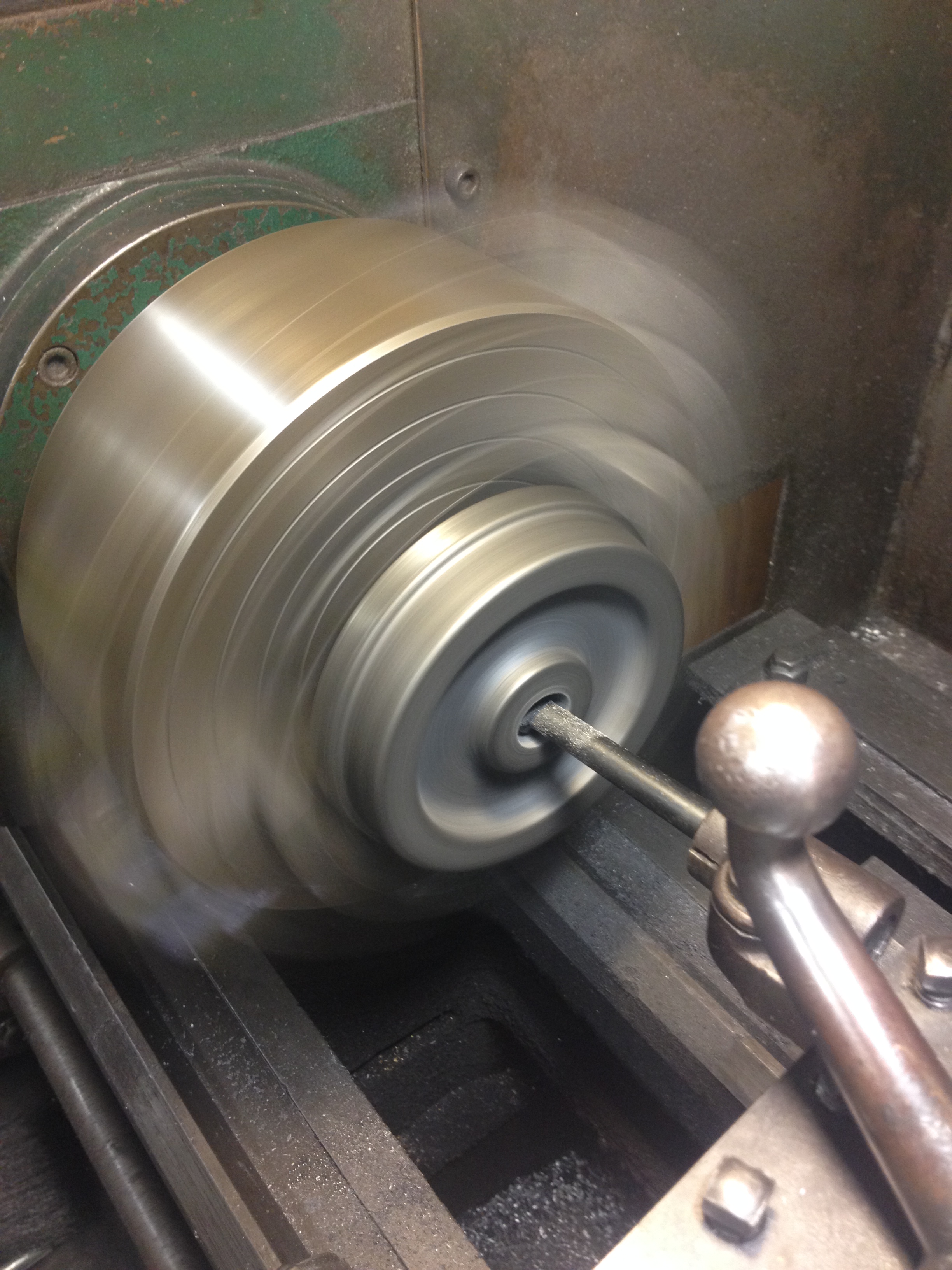 | current | 22:09, 30 March 2014 | 2,448 × 3,264 (1.93 MB) | Dnevil (talk | contribs) | Next operation: drill with 45/64 inch drill bit (not shown). I measured the size of the axle that the wheel would be pressed onto, and it was 0.751 inches. So I bored the hole to 0.749 for a tight fit (shown here). Photo by Daris A. Nevil, 2014. |