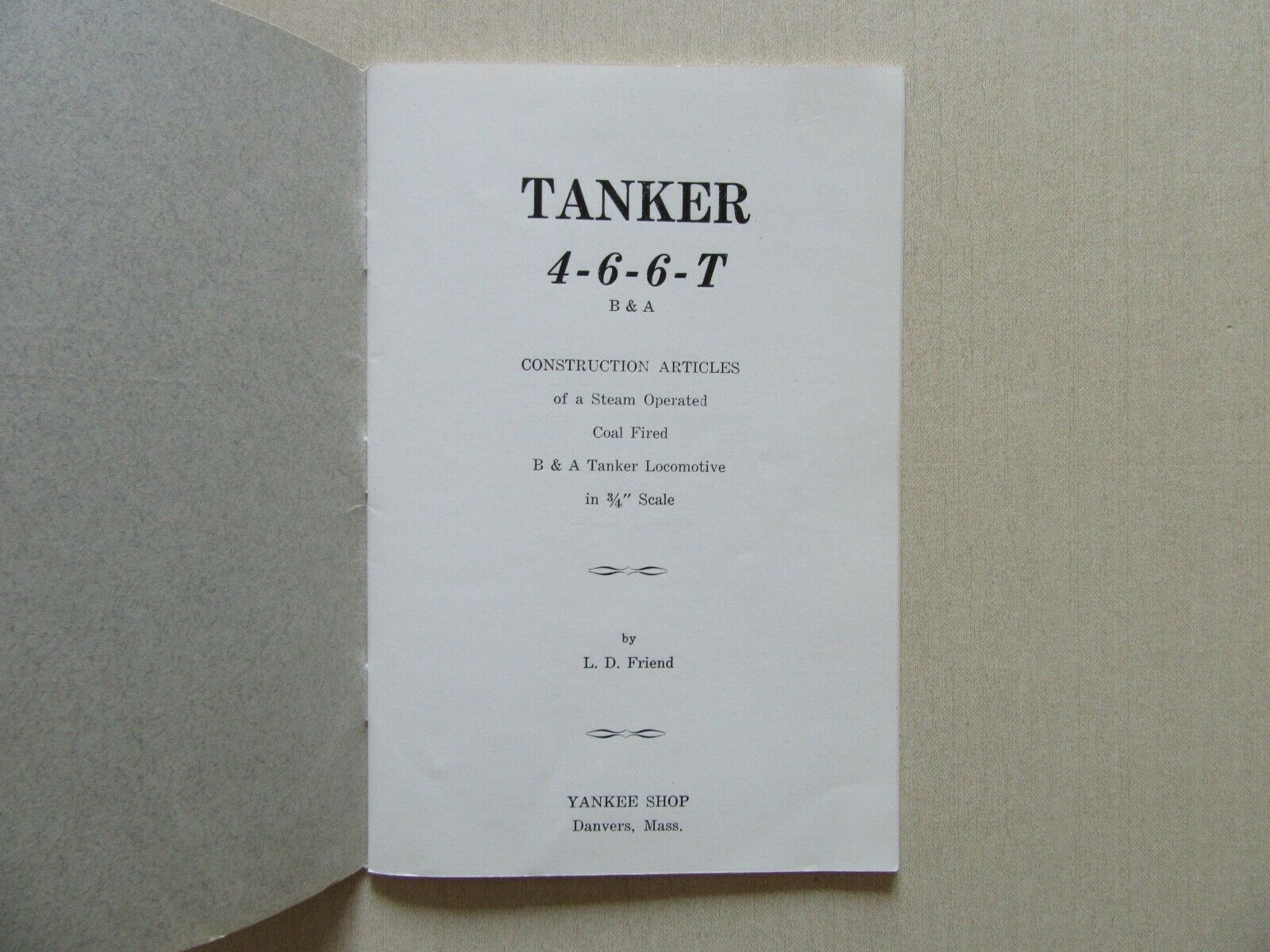 Yankee Shop 4-6-6-T Tanker Locomotive Build Instructions booklet by Lester Friend, 1948. From eBay.com, May 2021.