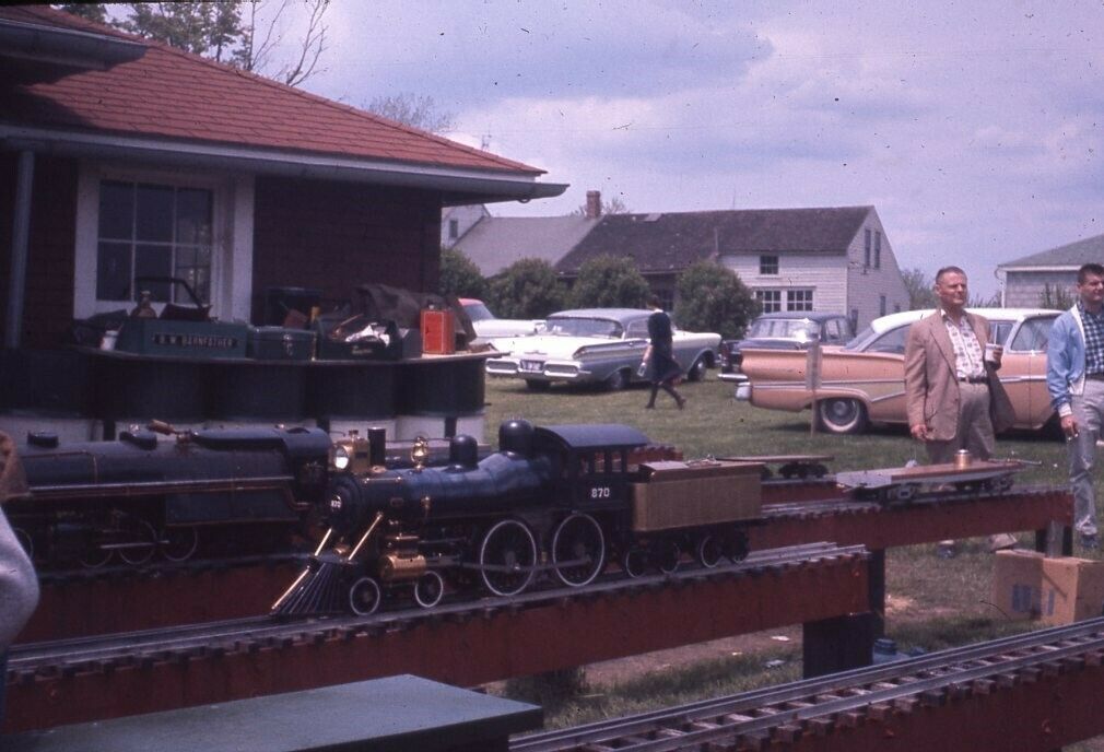 Al Milburn's No 870 4-4-0 in 1 inch scale. From eBay, August 2020. Note that Brenton Barnfather's tote box is in the background. The seller stated photo was taken May 1961.