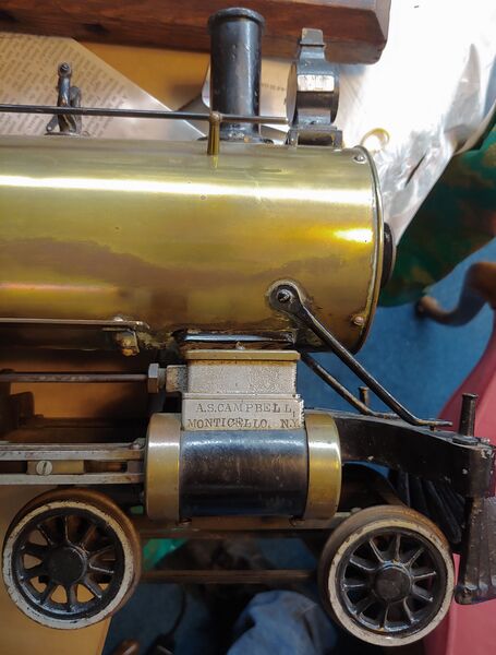 current08:10, 16 September 2021Thumbnail for version as of 08:10, 16 September 20213,406 × 4,489 (2.27 MB)Dnevil (talk | contribs)A 3-1/2 inch gauge 4-4-0 live steamer by Albert Campbell. Photo by Carey Williams, Sept 2021.