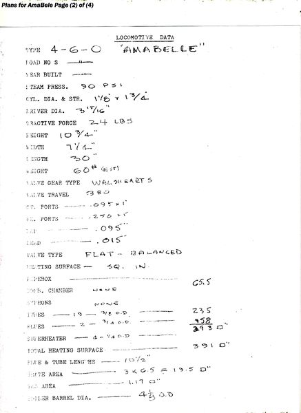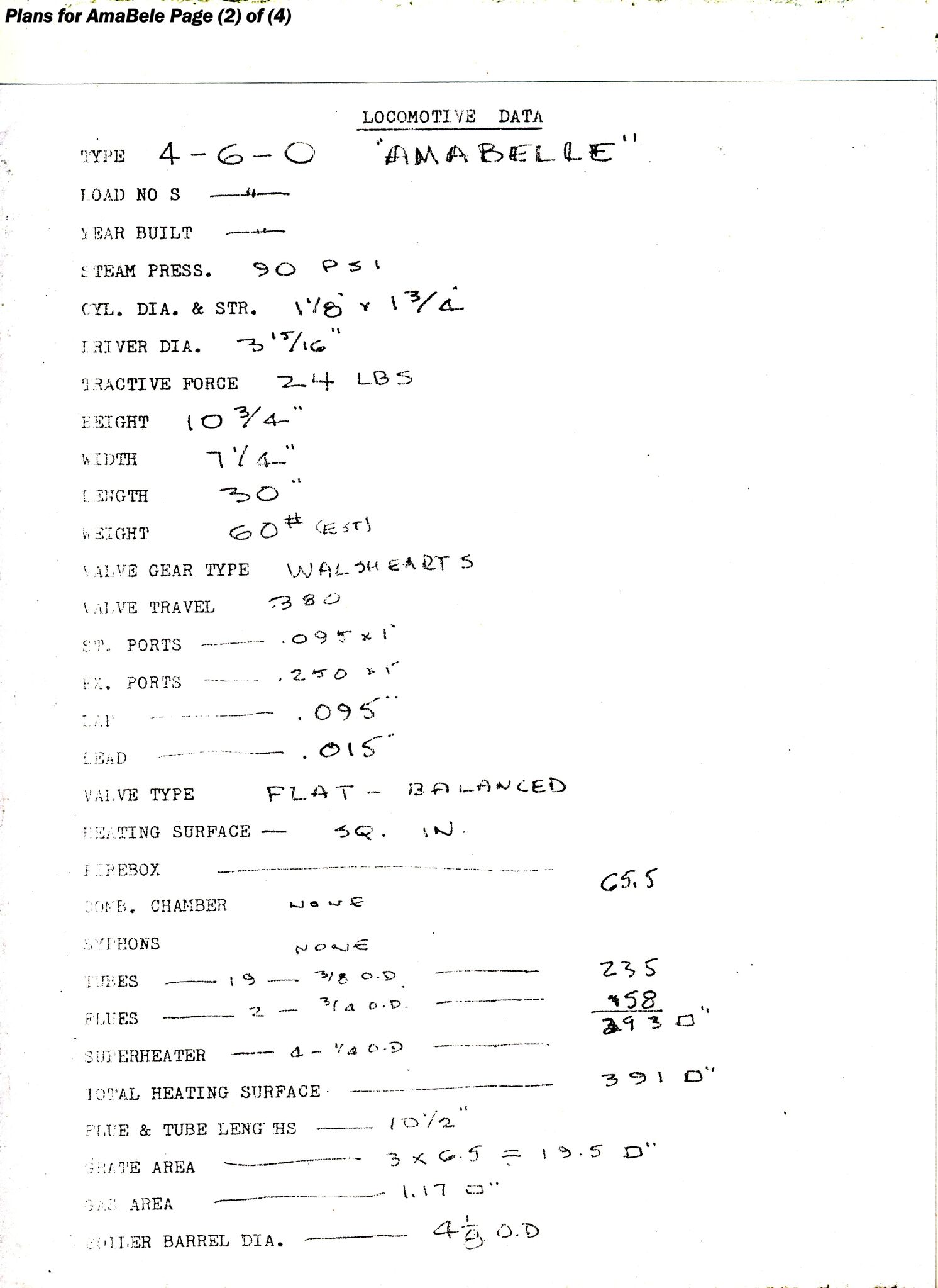 Plans and specifications for "Amabelle", a 3/4 inch scale 10-wheeler by Bill Van Brocklin. Provided by Mike Boucher.