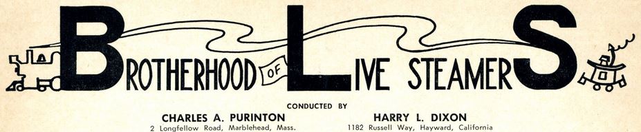 BLS Banner that headlines Carl Purinton's and Harry Dixon's monthly article in "The Miniature Locomotive" magazine. Jan-Feb 1953 edition, page 8.