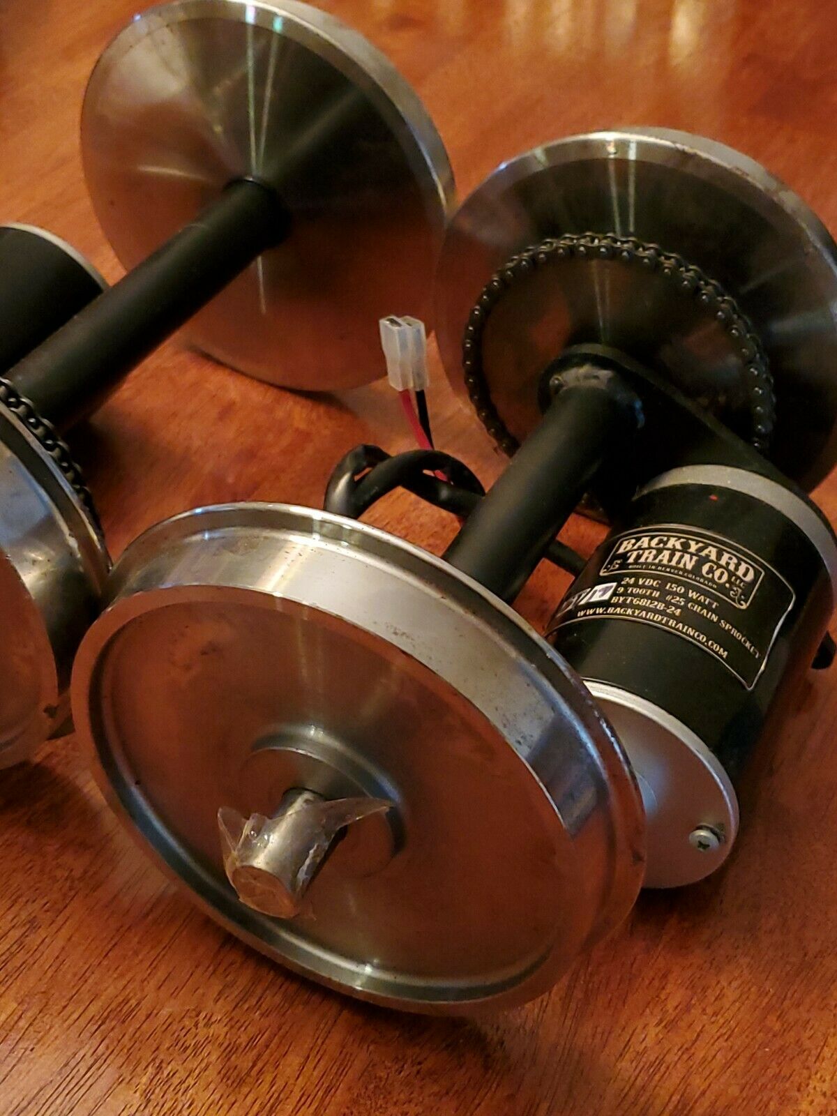 Diesel engine wheelset by Backyard Train Company from eBay auction, May 2021.