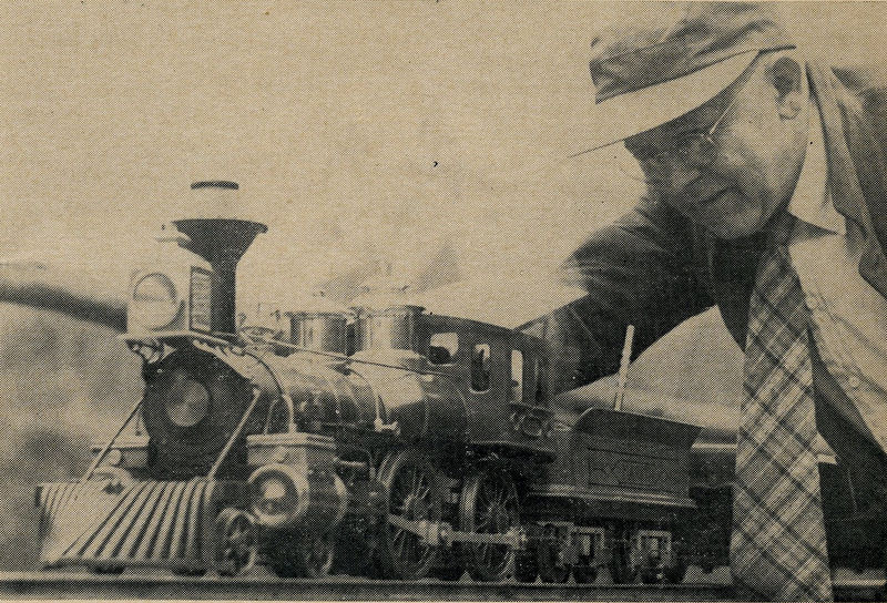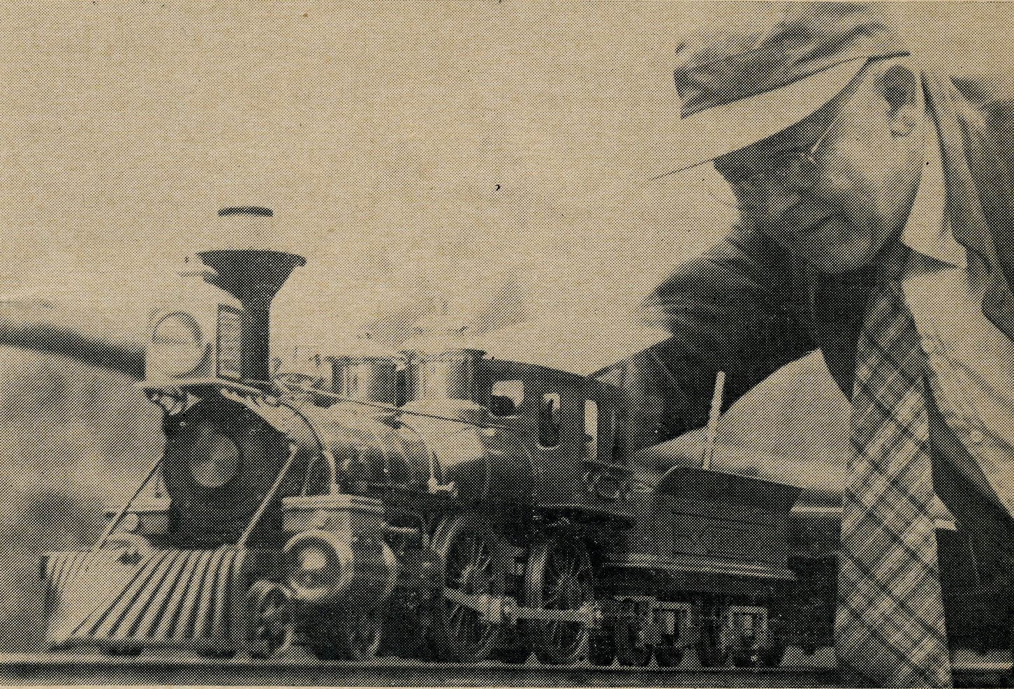 Bill Brower with his 3/4 inch scale Grant locomotive. From "The Miniature Locomotive", Sept-Oct 1953.
