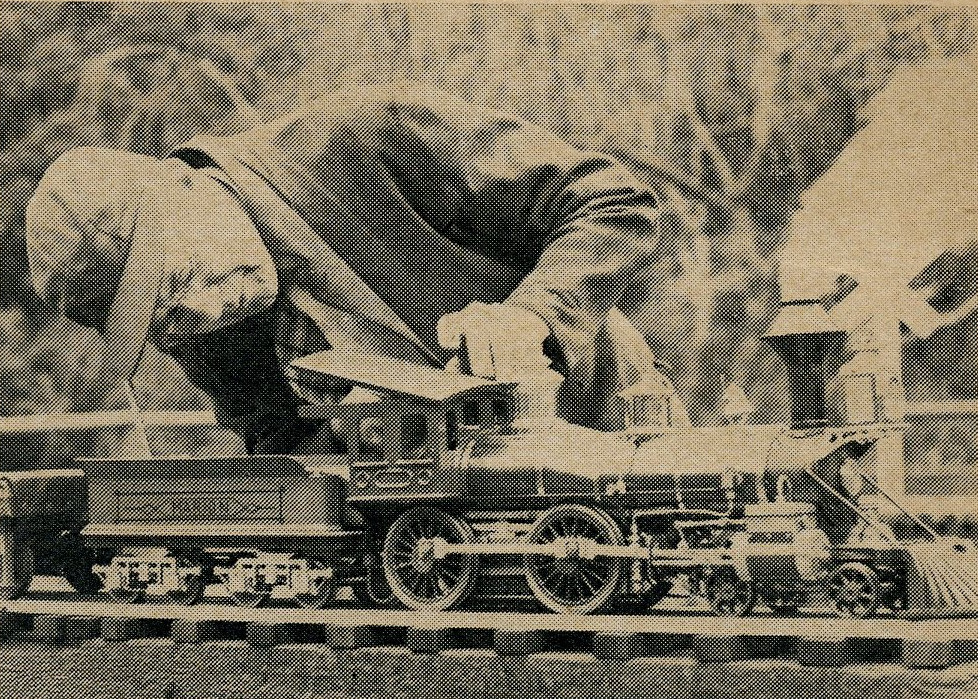 Bill Brower with his 3/4 inch scale Grant locomotive. From "The Miniature Locomotive", Sept-Oct 1953.