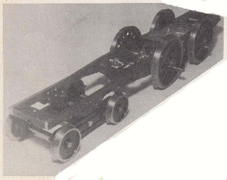 Simplun by Bill Van Brocklin. Now we're down to business--Frames, Drivers, Front truck and axle pump in to stay. Notice all parts are painted before assembly. From The North American Live Steamer, Volume 1, Number 7, 1956.