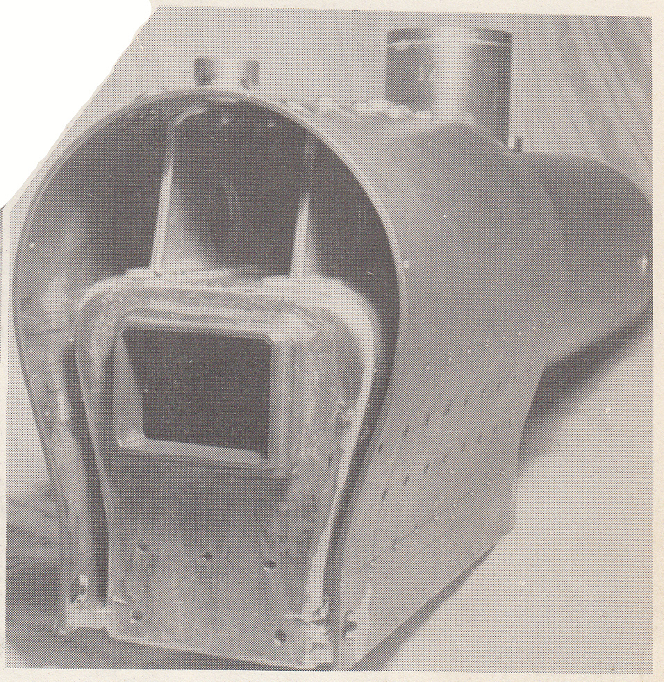 Simplun by Bill Van Brocklin. Shown in this photo is the firebox and flue assembly, already silver soldered ready for insertion into the outer shell. NOTE FIRST TIMERS: It will save you a little tussle if at this stage you will put the front tube sheet in position and silver solder, then slide the complete unit into the outer sheel. DON'T FORGET THE DRY PIPE!!! From The North American Live Steamer, Volume 1, Number 7, 1956.