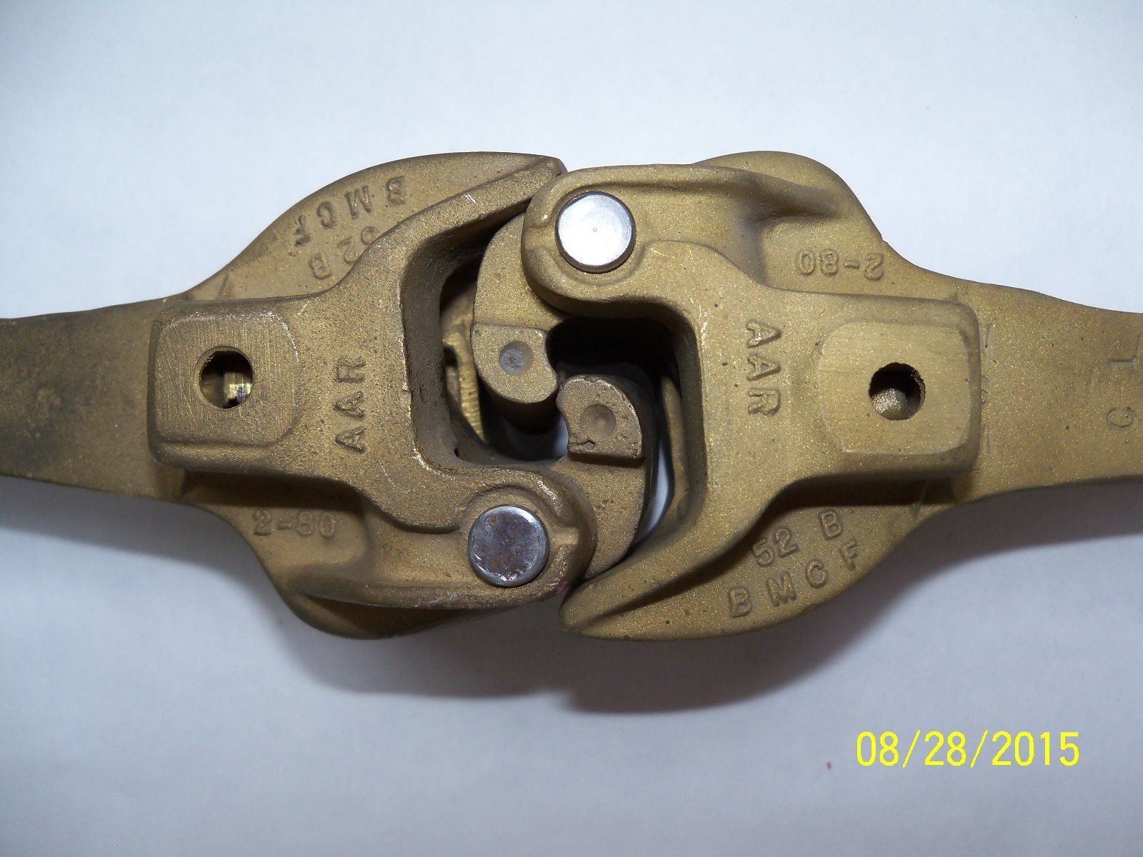 A pair of couplers by Buckeye Model Car and Foundry, cast in mag-bronze. August 2015.