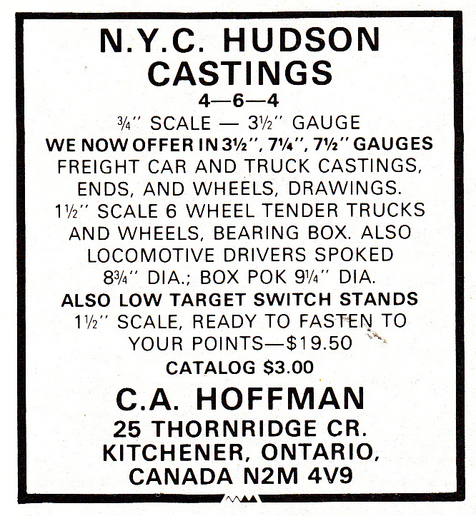 C.A. Hoffman advertisement in Live Steam Magazine, January 1983.