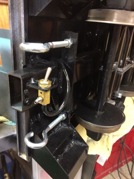 Clippard TV-2S toggle valves were selected because of their small size, low cost, and reliable operation. Note the eye hooks for safety chains, as required by some railroads. Photo by Daris A Nevil, August 2015.