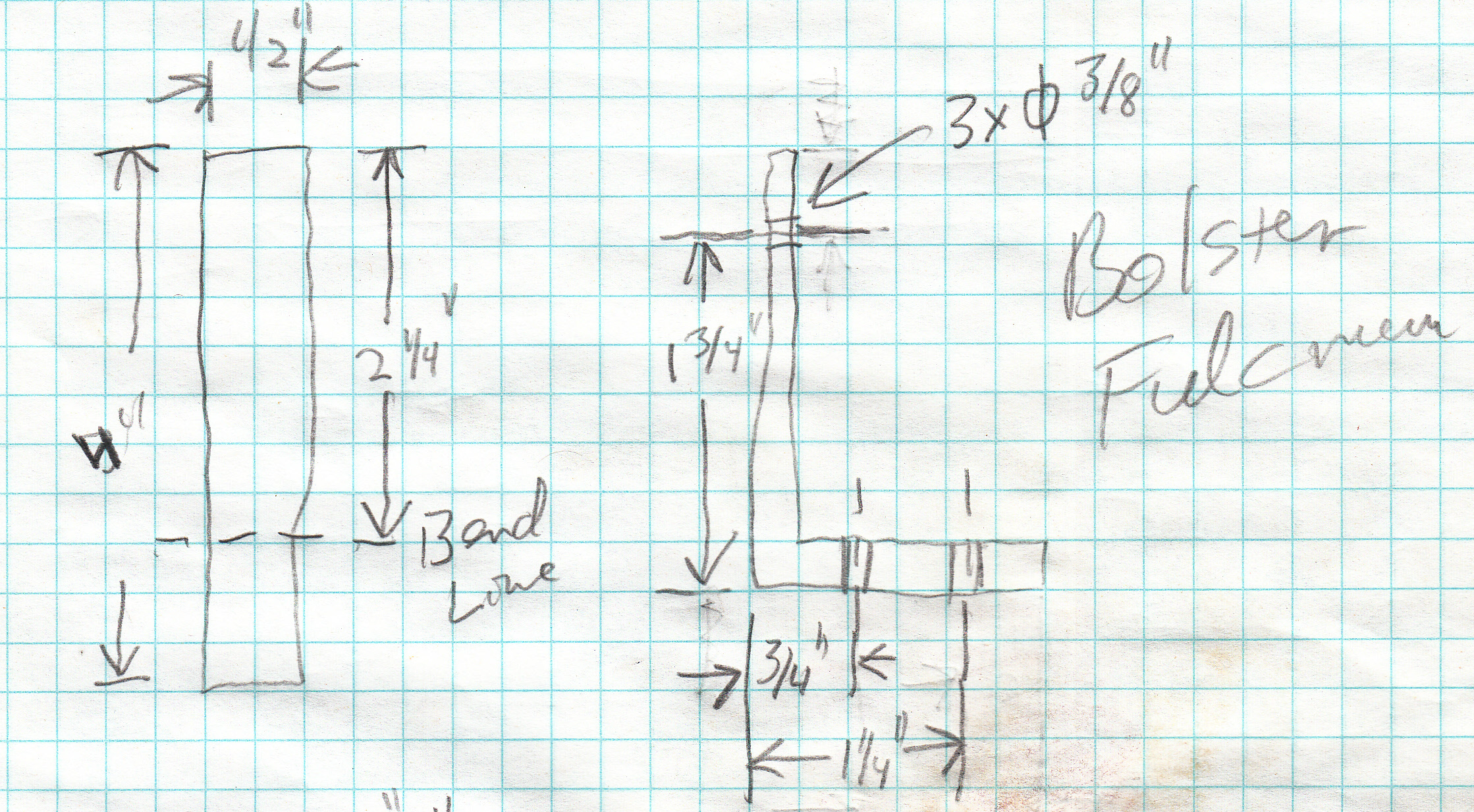 The Bolster Fulcrum is attached to the side of the bolster. Drawn by Daris A Nevil, June 2015.