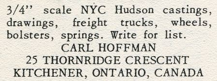 Carl Hoffman advertised his 3/4 inch Hudson in "Live Steam Newsletter", September 1966.