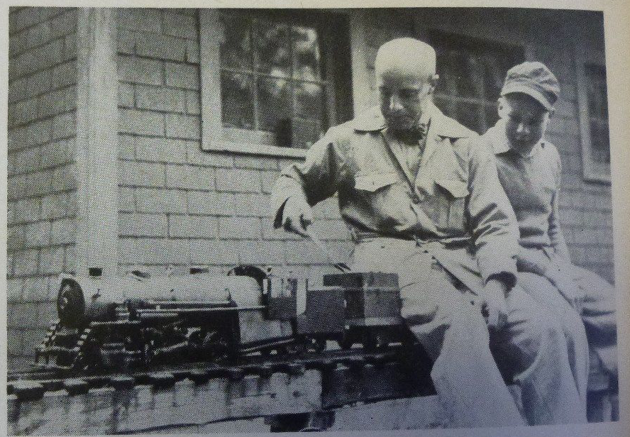 Error code: 1 | 888 × 616 (1.12 MB) | Dnevil (talk | contribs) | Mr. Purinton and son Charles firing up their 4-6-6T B&A tanker for a run at the live steam meet at Diamond Point, N.Y. Photo by L.D. Langworthy. From "The Modelmaker", June-July 1938. |