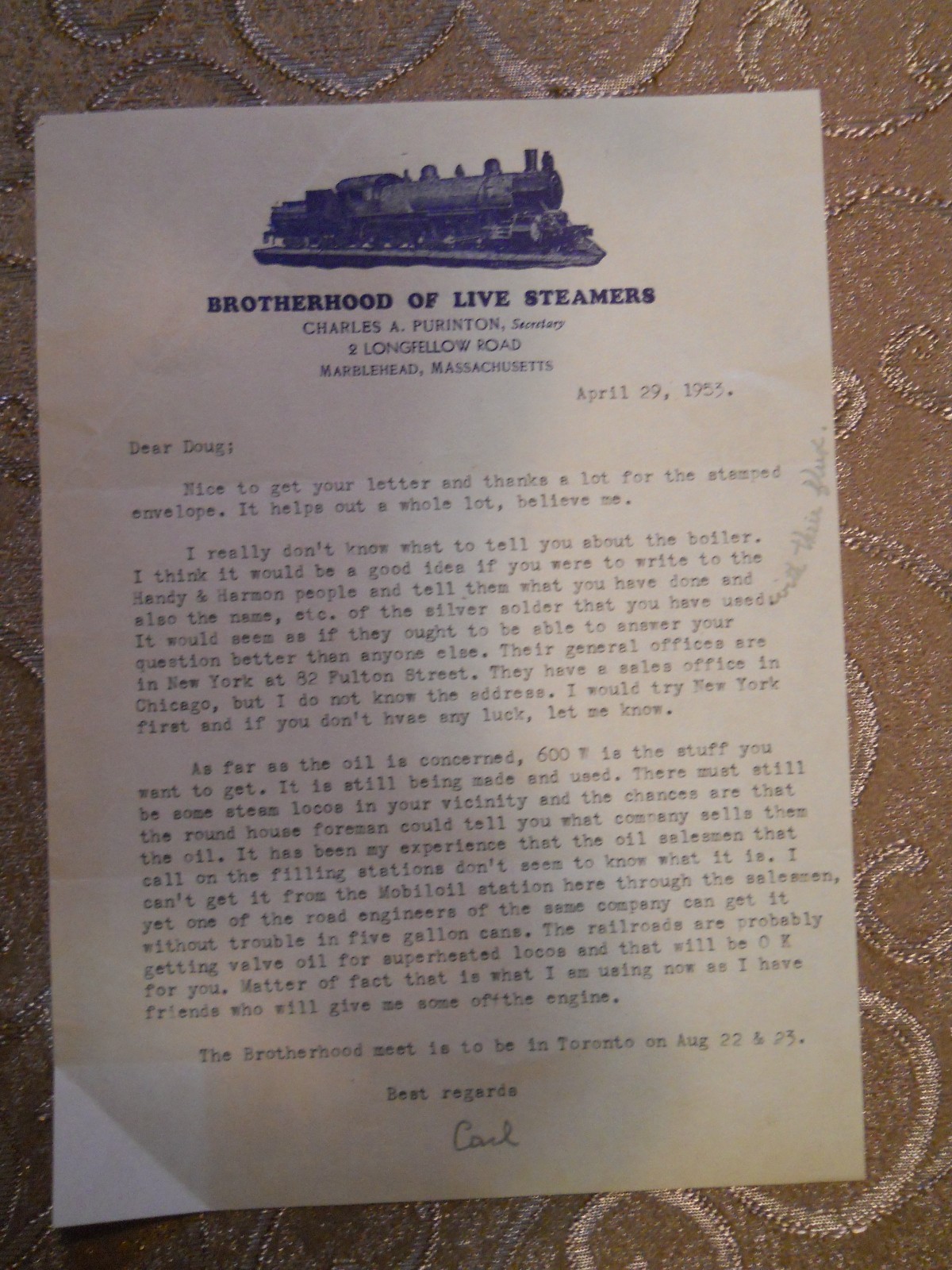 Letter from Carl Purinton, dated 29 April 1953. From eBay auction, 5 July 2013.