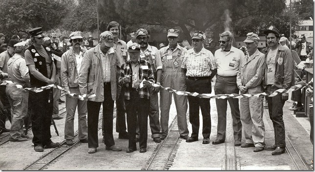This is Carl Purinton cutting the ribbon at the Los Angeles Live Steamers for the first IBLS Meet in 1980. Car and Bob Hornsby flew out from the east coast to attend. Photo provided by Bob Hornsby.