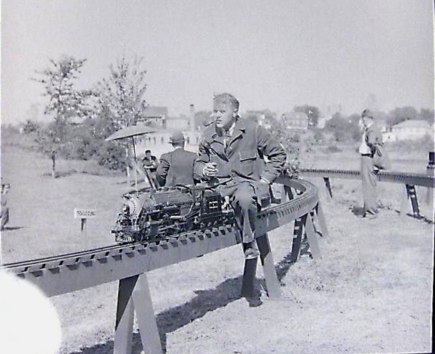 Lester Friend at New England Live Steamers meet at Friend Box Company, Danvers, MA, 1939. Photo from eBay, 2018.