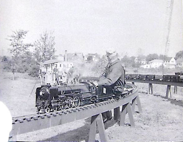 Gene Steven's Hudson #5290 (driver unknown) at New England Live Steamers meet at Friend Box Company, Danvers, MA, 1939. Photo from eBay, 2018.