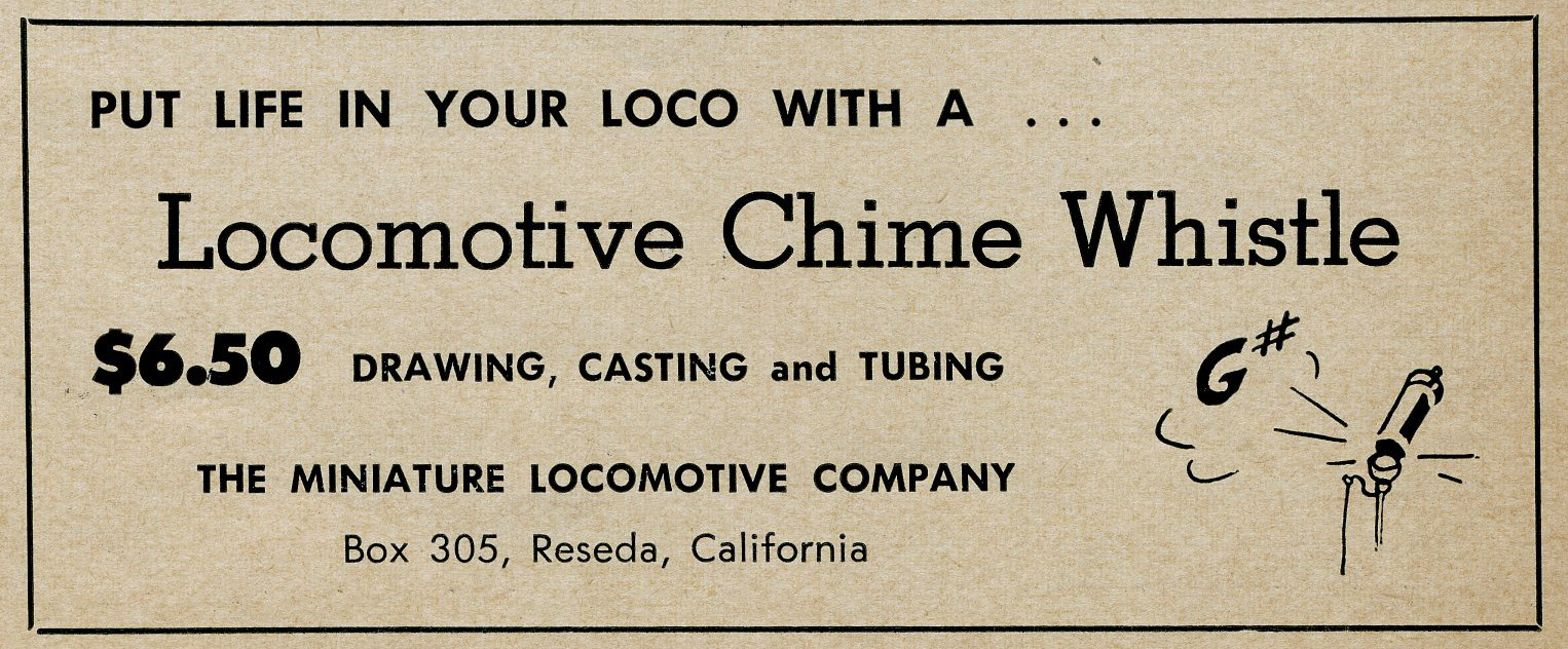 Dick Bagley's Locomotive Chime Whistle kit, from "The Miniature Locomotive", Nov-Dec 1954