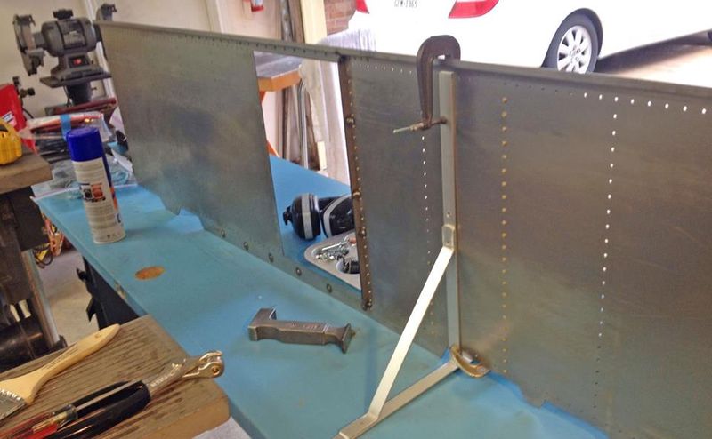 current18:33, 1 January 2016Thumbnail for version as of 18:33, 1 January 2016960 × 593 (62 KB)Dnevil (talk | contribs)Doug Blodgett wrote: This is the setup I use to hold the panel while I am installing rivets. Makes it easier to reach both sides at the same time - rivet gun in front and bucking bar on back side. December 2015.