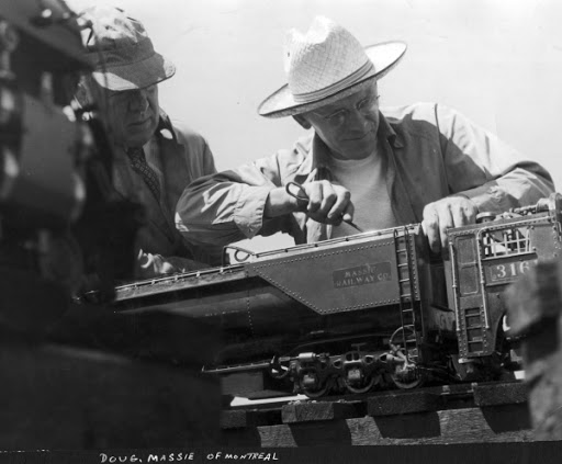 Doug Massie of Montreal tending to his Northern locomotive - 1950. From http://pics.tsme.ca/viewarchive.aspx
