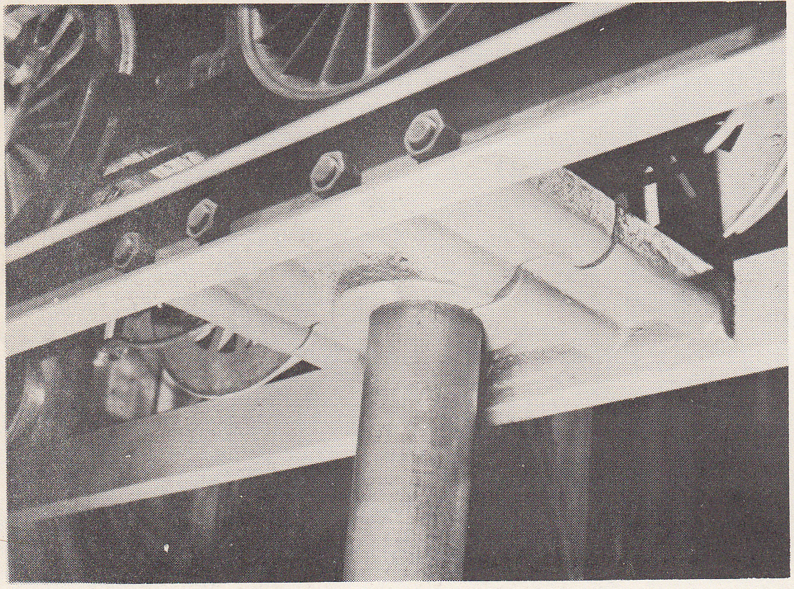 Dwight Durkee's Hydraulic Engine Lift, Figure 4. Rails and castings are clamped to top of ram by 4-1/2 inch rods nutted on each end. From "The North American Live Steamer", Volume 1 Number 4.