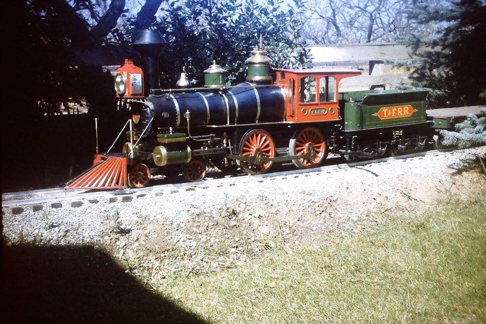 1.5 inch scale, 7 1/2 inch gauge 4-4-0 American built by the late Dwight Durkee, Jr. of Cupertino, California. Photo provided by Dwight's son, Dwight, Feb 2014.