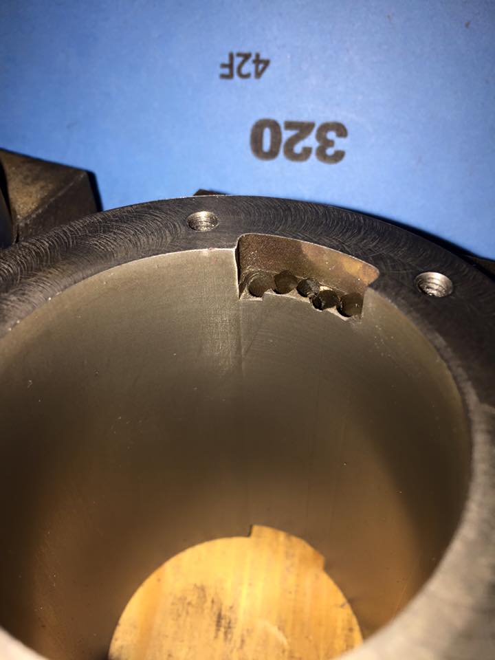 Eccentric Engineer showing poor results from trying to drill steam passages at an angle.