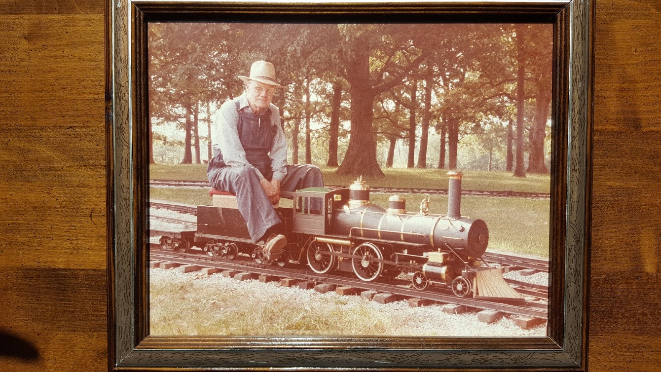 Emery Ohlenkamp on his 1.5 inch scale American. Photo provided by Emery's grandson, Dennis Ohlenkamp.