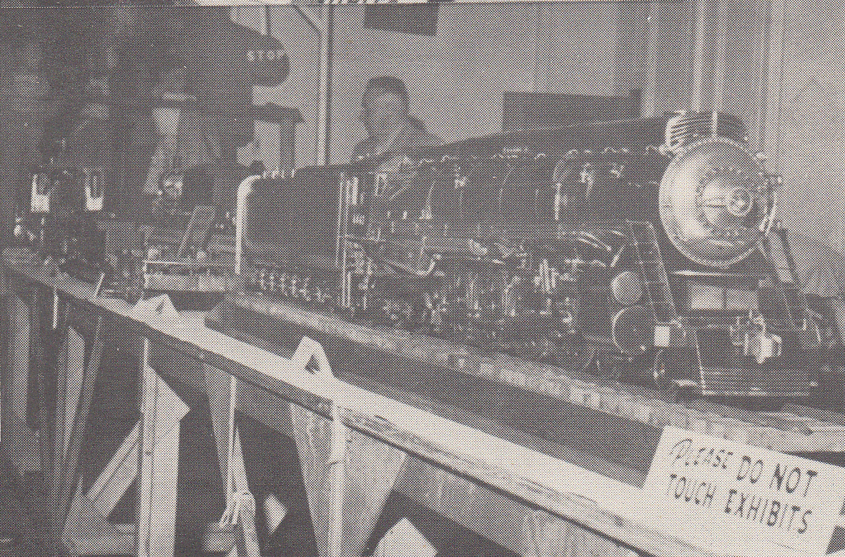 Frank Dee's 3/4 inch scale 4-8-4 at the first Model Engineer Show of the Golden Gate Live Steamers, which produced sufficient funds for the club to build a 12x20 foot old time station house at their track in the Redwood Regional Park, Oakland. From The North American Live Steamer, Volume 1, Number 2, 1956