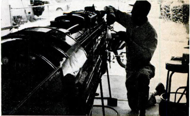 Repair work is done in garage shop where Mann made all parts on lathe from new and scrap stock. Frank Mann and his Santa Fe 5001. From "Popular Mechanics", November 1970.
