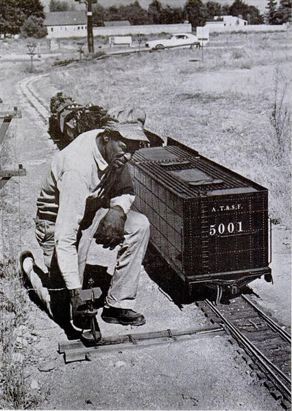 | current | 14:17, 17 January 2018 | 573 × 806 (194 KB) | Dnevil (talk | contribs) | Miniature steam locomotive, built from scratch by Frank Mann, is perfect replica of real thing. Engine is considered largest model of its type in the world. Set includes freight and passenger trains with authentic sideline fixtures. From "Ebony" maga... |